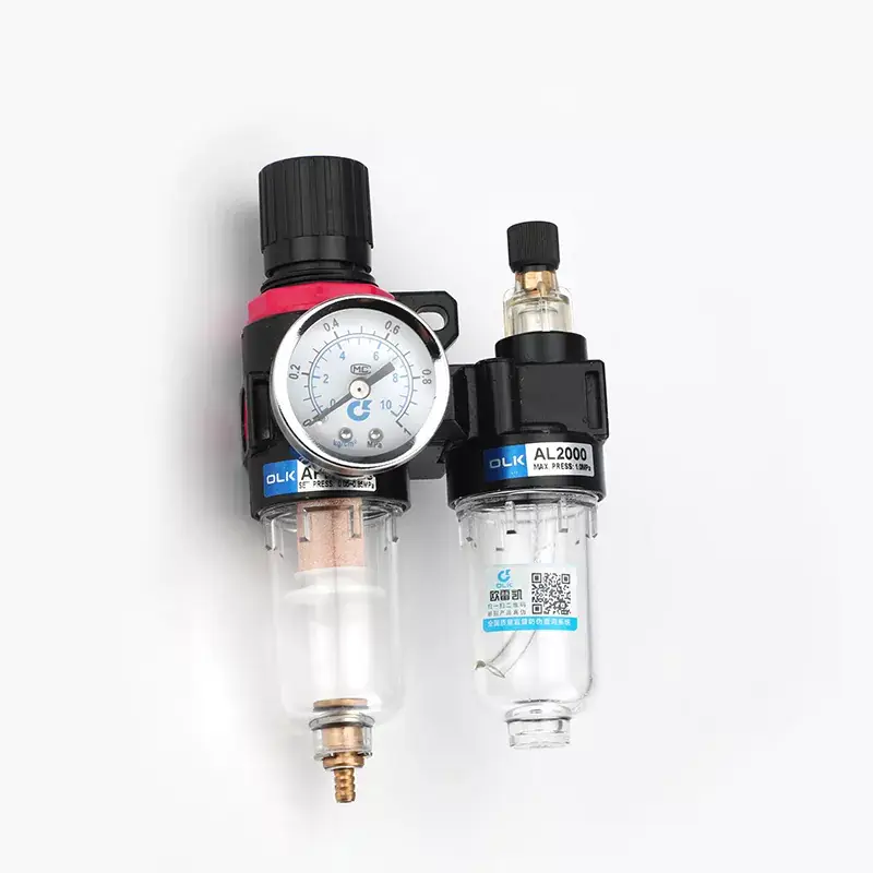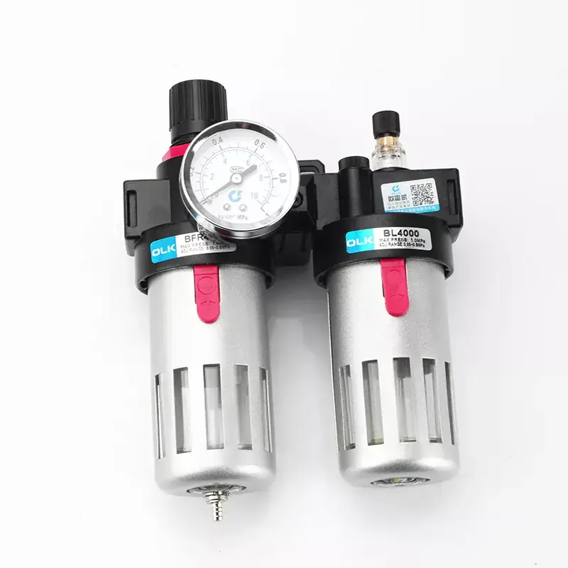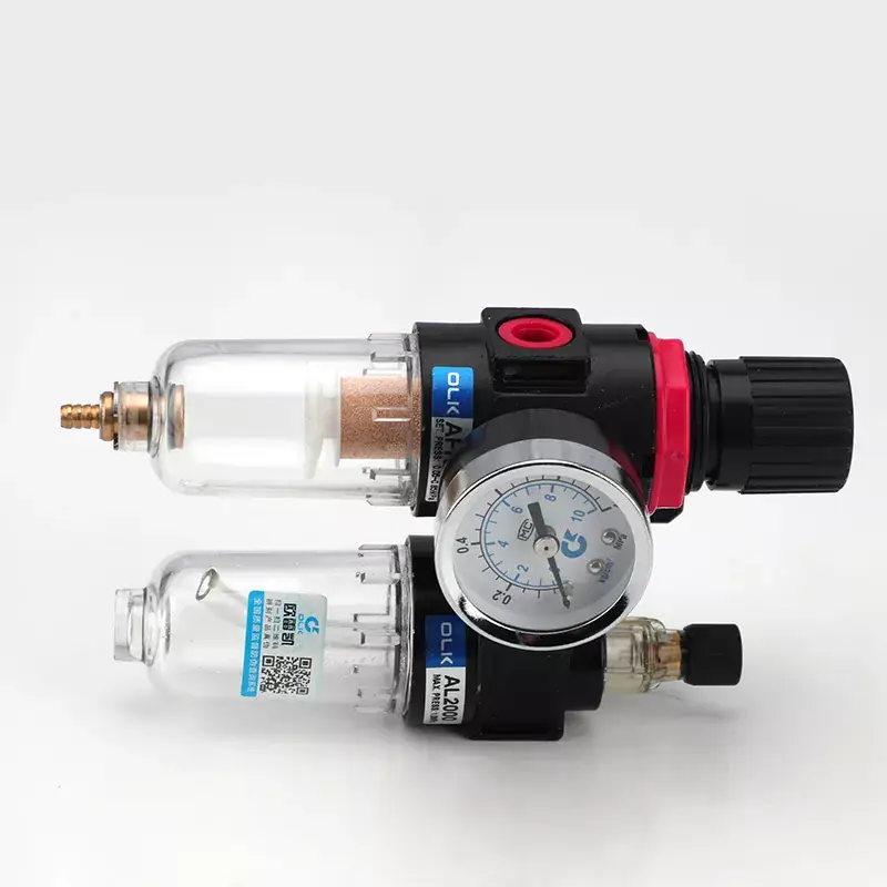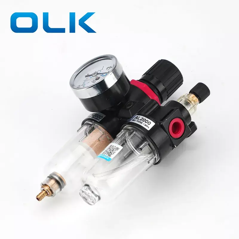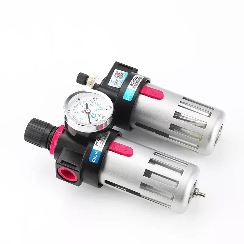 Дуплексные агрегаты Ouleikai (OLK) Airtac типа AFC и BFC FRL с функциями регулирования давления, фильтрации и смазки предназначены для подачи смазочного воздуха. Их легкая и компактная конструкция упрощает установку и использование. Медный сердечник фильтра превосходит качество типичных пластиковых сердечников, что приводит к минимальным потерям давления и высокой эффективности отделения воды. Прозрачная чашка контейнера, изготовленная из высокопрочного термостойкого материала, устойчива к старению и обеспечивает отличную герметичность и прозрачность. Благодаря большому корпусу чашки он непроницаем и воздухонепроницаем, что позволяет напрямую наблюдать за размером капель масла.