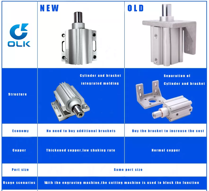 OLK PNEUMATIC предлагает два типа цилиндров для удовлетворения различных требований сцены. Для получения более подробной информации свяжитесь с отделом продаж OLK.