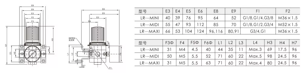 Регулятор давления LR имеет относительно простую структуру и обычно используется в чувствительных к стоимости и функционально простым приложениям. Использование регулятора воздуха: подтяните, чтобы разблокировать, повернуть, чтобы регулировать давление, нажмите на блокировку