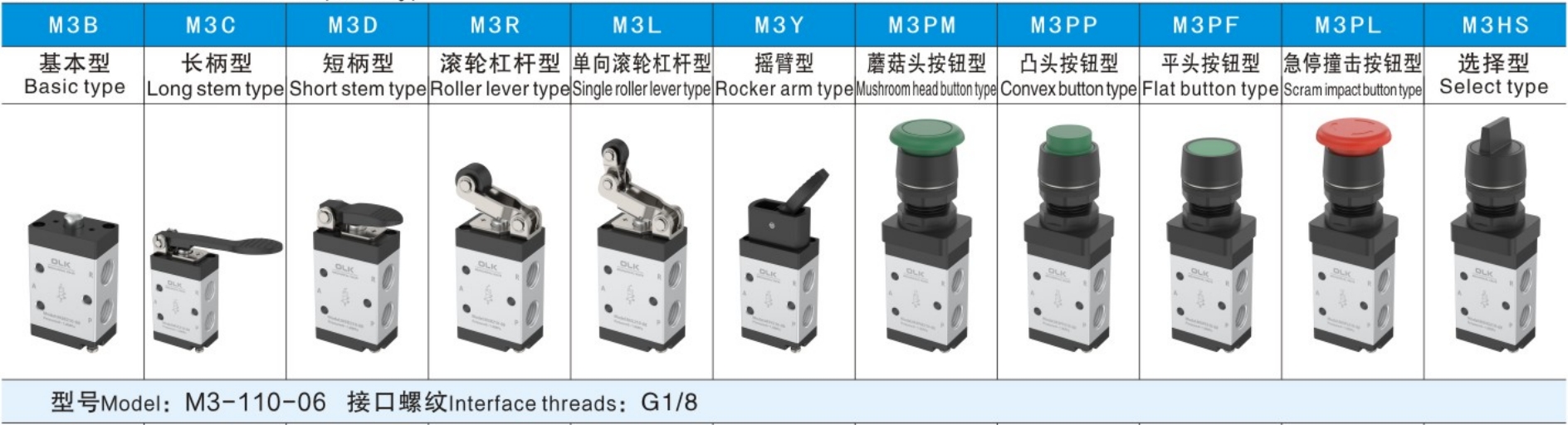 3. Серии M3C, M3D, M3Y, M3PF, M3PM, M3PP и M3PLM3HS имеют ручное управление и имеют различные конструктивные формы управляющих головок для удобного использования в различных условиях.