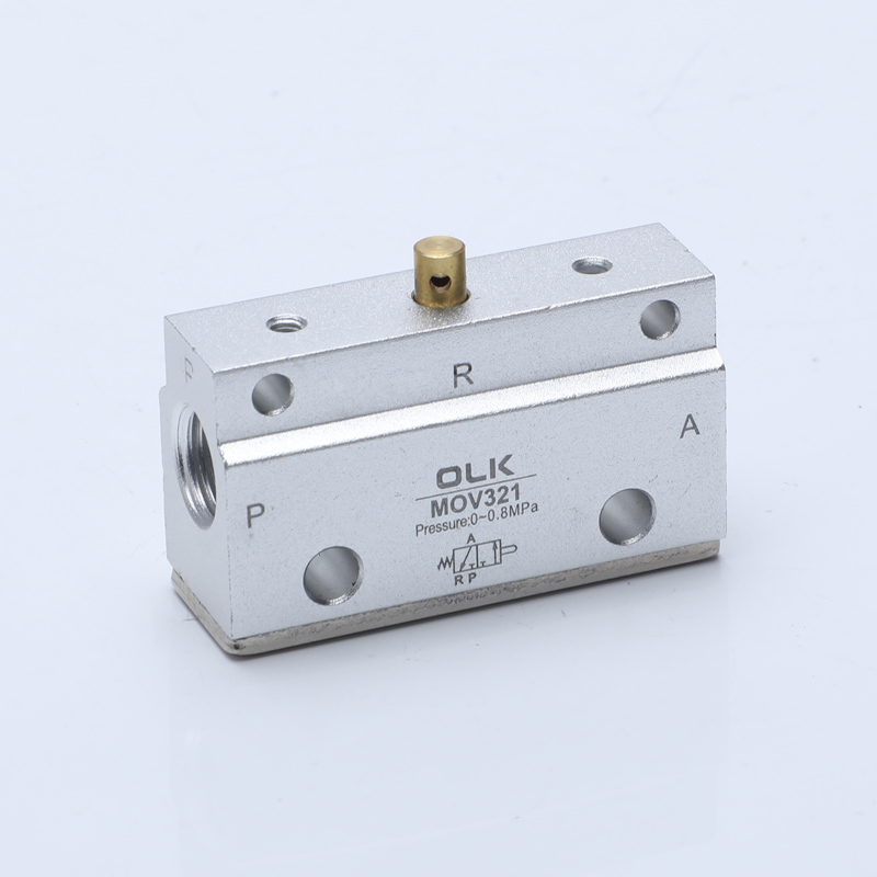 Превосходная коррозионная и износостойкость 3/2-ходовой механический клапан MOV 321 изготовлен из высококачественного алюминиевого сплава. Резьба механического кнопочного клапана компании OLK прозрачная и обеспечивает хорошее уплотнение, сводящее к минимуму утечку воздуха. Кнопки обеспечивают приятные тактильные ощущения и быстрый отскок.