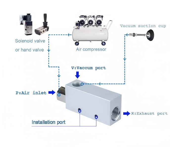 Генератор вакуума — это новый тип эффективного, чистого, экономичного и небольшого вакуумного компонента, который использует источник воздуха с положительным давлением для создания отрицательного давления. Это позволяет очень легко и удобно получать отрицательное давление в местах со сжатым воздухом или в местах, где в пневматической системе требуется как положительное, так и отрицательное давление.