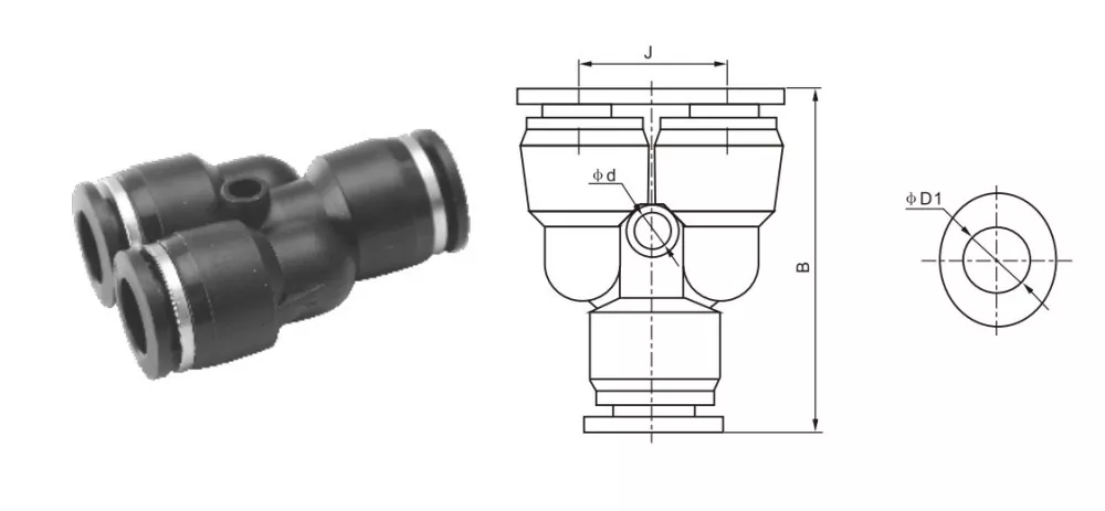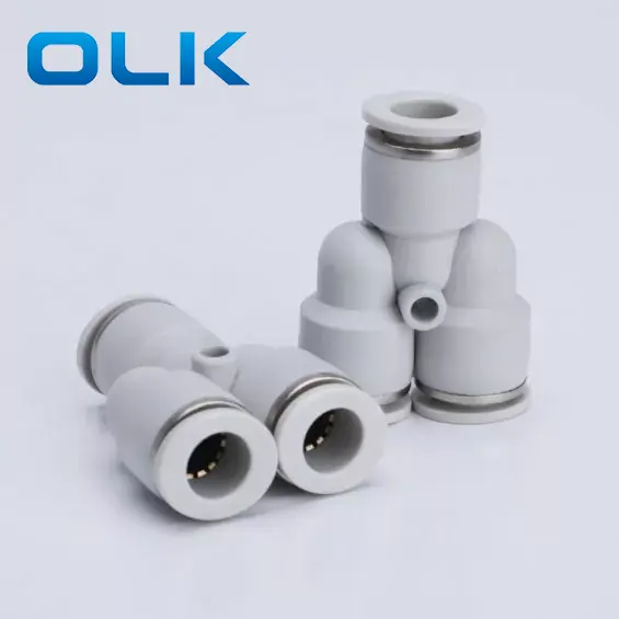 Py Union Y Push In Tube Fiting представляет собой Y-образную фитинг, используемую для разделения или объединения воздушного потока в пневматических системах.