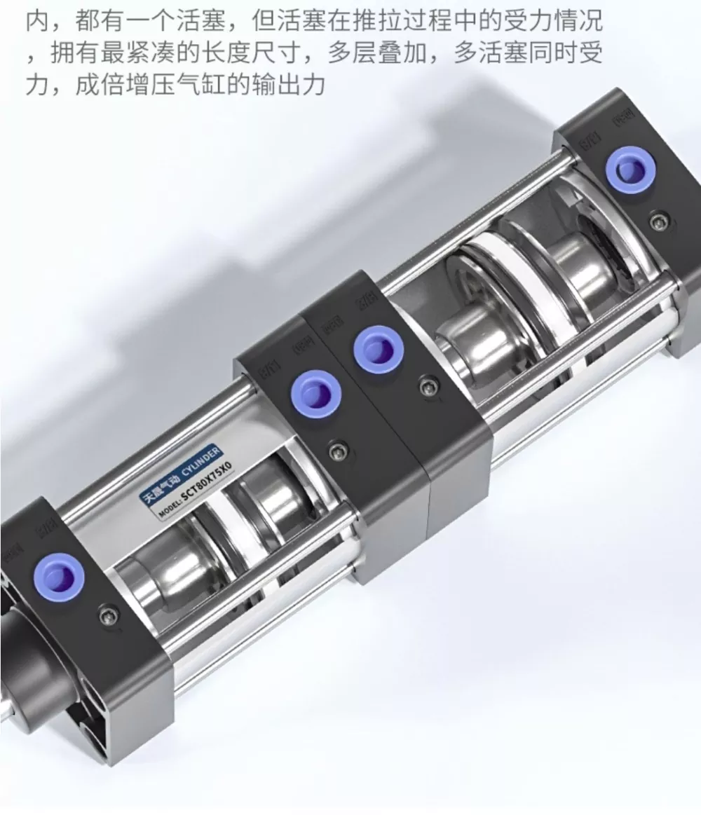 Цилиндр рулевой тяги SCT оснащен двунаправленными уплотнительными кольцами YCC и имеет мощную двухтактную конструкцию, компактный и изысканный внешний вид, обеспечивающий быстрое действие и плавную и стабильную производительность. Каждый слой цилиндра содержит отдельный поршень, и во время процесса «тяни-толкай» несколько поршней распределяют нагрузку, что позволяет цилиндру достичь максимально компактной длины, одновременно создавая умноженную выходную силу за счет многослойной многослойной структуры. Такая конструкция с двойным усилием обеспечивает более высокую мощность, а конфигурация с шестью уплотнительными кольцами обеспечивает превосходные характеристики уплотнения, позволяя цилиндру выдерживать давление до 1,4 МПа без утечек.